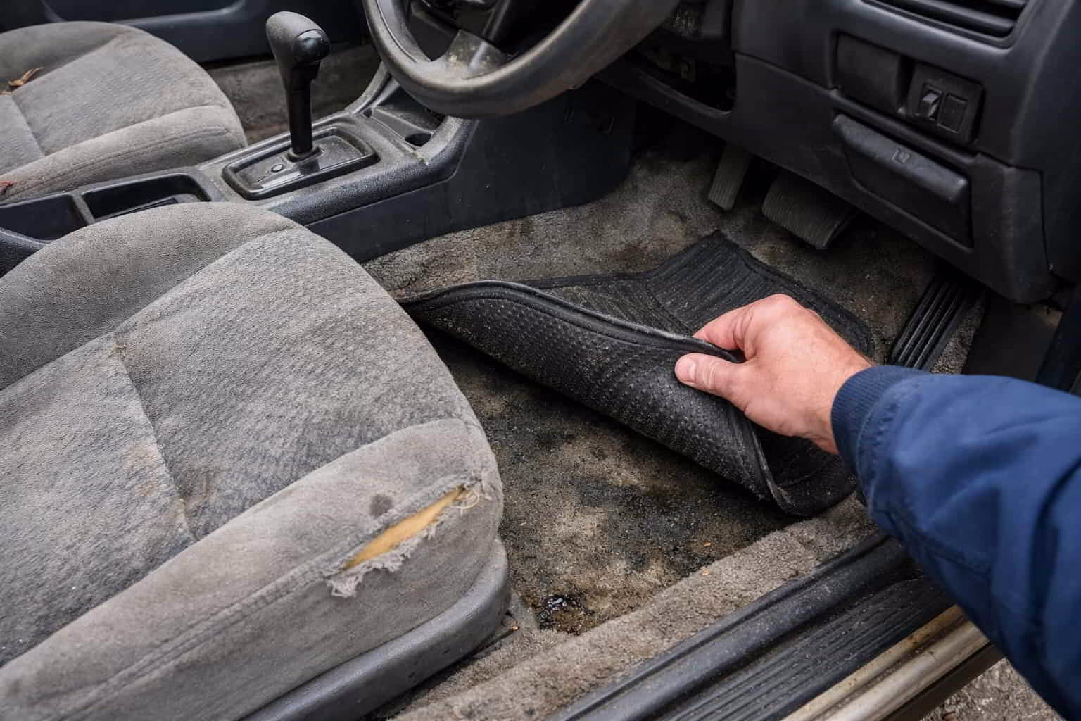 Smell the cabin carefully. A musty or damp smell can indicate water entry or flood damage. Even if the interior looks clean, water exposure can cause long-term electrical issues that are difficult and expensive to fix.